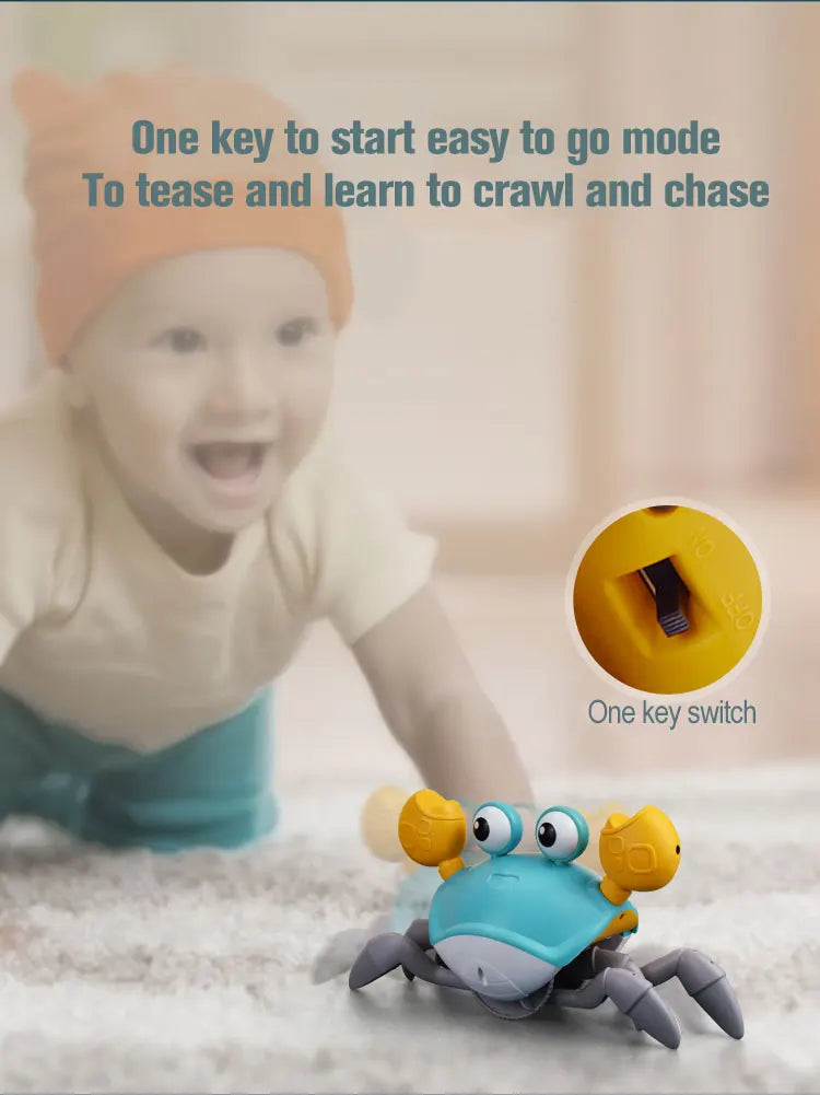 Entertaining a baby can be challenging, but the Crawling Crab Adventure Pal provides hours of amusement. It's crafted to be safe for babies, ensuring that playtime is both fun and secure. This gives parents peace of mind, knowing their child is playing with a toy that promotes safety and developmental benefits.